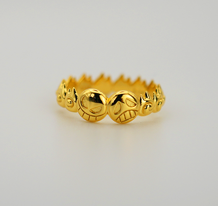 Fire Fist Ace ring features the smiley face and sad face featured on Portgas D Aces hat, connecting to a band made up of his mera mera no mi (flame flame fruit) design.